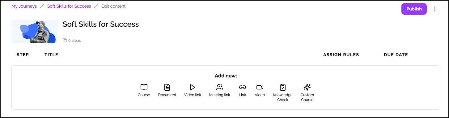 Publish: When the Learning Journey is ready for Learners, click Publish.