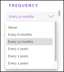 - Frequency options: Annually, biennially, custom intervals