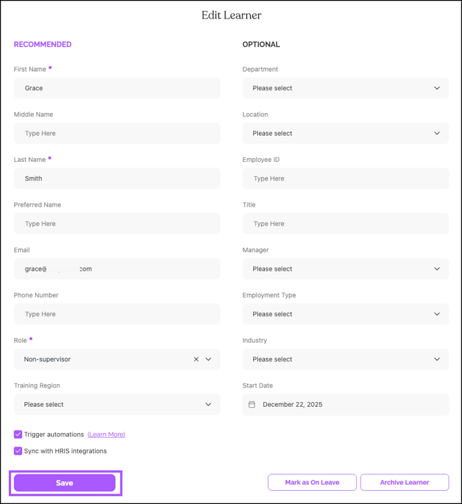 Edit a Single Learner from Their Profile