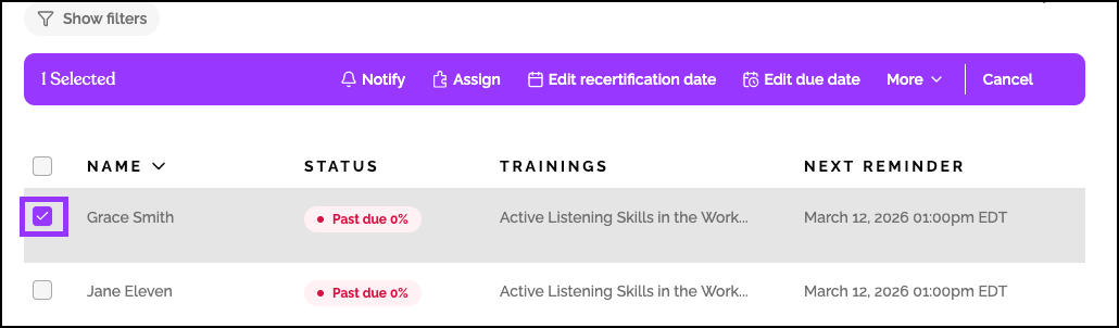 - You can select one or multiple learners