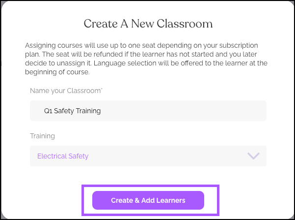 Helpful Tip: Verify no learners already have the course assigned individually. If they do, un-assign it first from their profile before adding to the classroom.