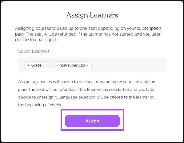 - From the upper, right hand corner click Assign Learners.