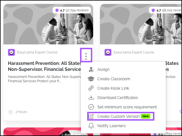 Create fully editable custom versions of official Harassment Prevention courses to tailor content to your organization while maintaining compliance with legal and timing requirements.