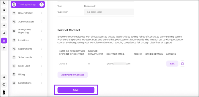 Always click Save at the bottom of the Training Settings page after changing the toggle. Settings aren't applied until saved.