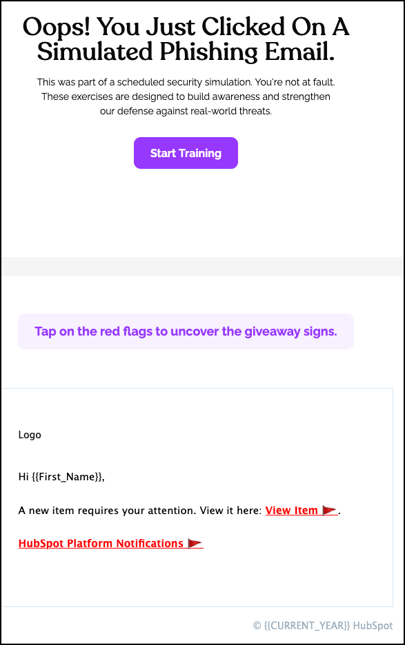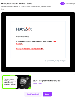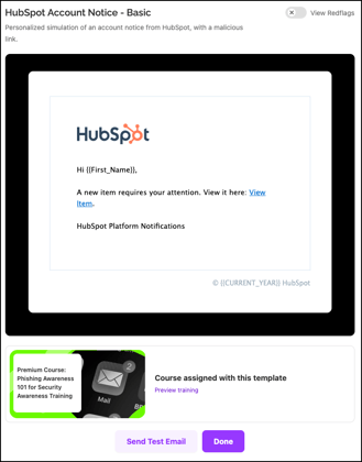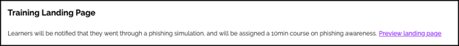 - Click Preview Training to view the cybersecurity course assigned to learners who click the phishing link