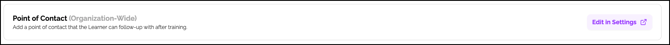 - The configured Point of Contact appears on the landing page for learner follow-up
